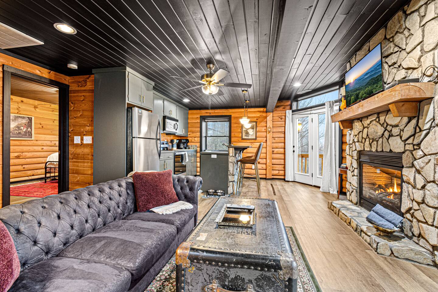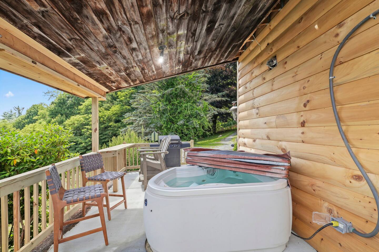 Perfect Mountain Getaway with Private Hot Tub, Mountain Views, and Easy Access to High Country Adventures Escape to the lower level of this charming duplex cabin, part of a peaceful three-cabin compound, offering the perfect base for your mountain experience. Just minutes from the Parkway and Downtown Boone, this is the ideal location for a short ride to dinner, hiking, biking, gem mining, wineries, breweries & more. Unwind in the cozy living room with a fireplace and fast WiFi. The fully stocked kitchen makes meal prep easy, featuring a drip coffee maker, dishwasher, microwave, toaster, Instant Pot, and blender. The king bedroom offers a relaxing retreat, complete with a TV and cable for entertainment. The bathroom boasts a large shower and heated floors, ensuring comfort throughout your stay. Step outside to your private deck, where you can enjoy a grill with cooking utensils and propane and soak in the mountain views while watching the deer, cows, and fireflies in the evening. This pet-friendly retreat allows you to bring your furry companion along ($50 for 1 dog, $75 for 2). While your unit ensures privacy with your own private hot tub, deck, and grill, please note it’s not ideal for total seclusion. But if you want to be near all of High Country's best activities, this is the perfect spot!