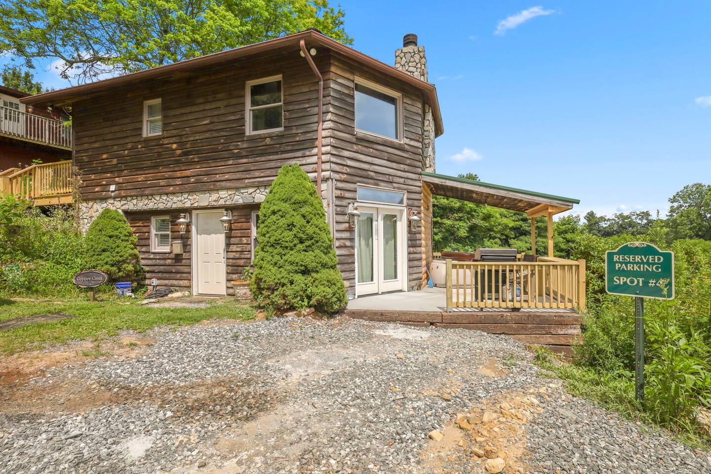Although your roof is shared with our upper level unit (Copper Springs), you will park on different levels, enter on different sides of the cabin, and your decks are on opposite sides of the building. We segregated the spaces to maintain privacy!